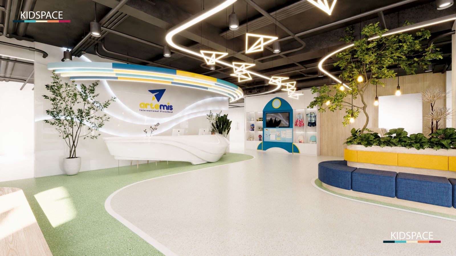 Trong thiết kế lớp học mầm non, việc chia khu vực giúp trẻ dễ dàng lựa chọn hoạt động.