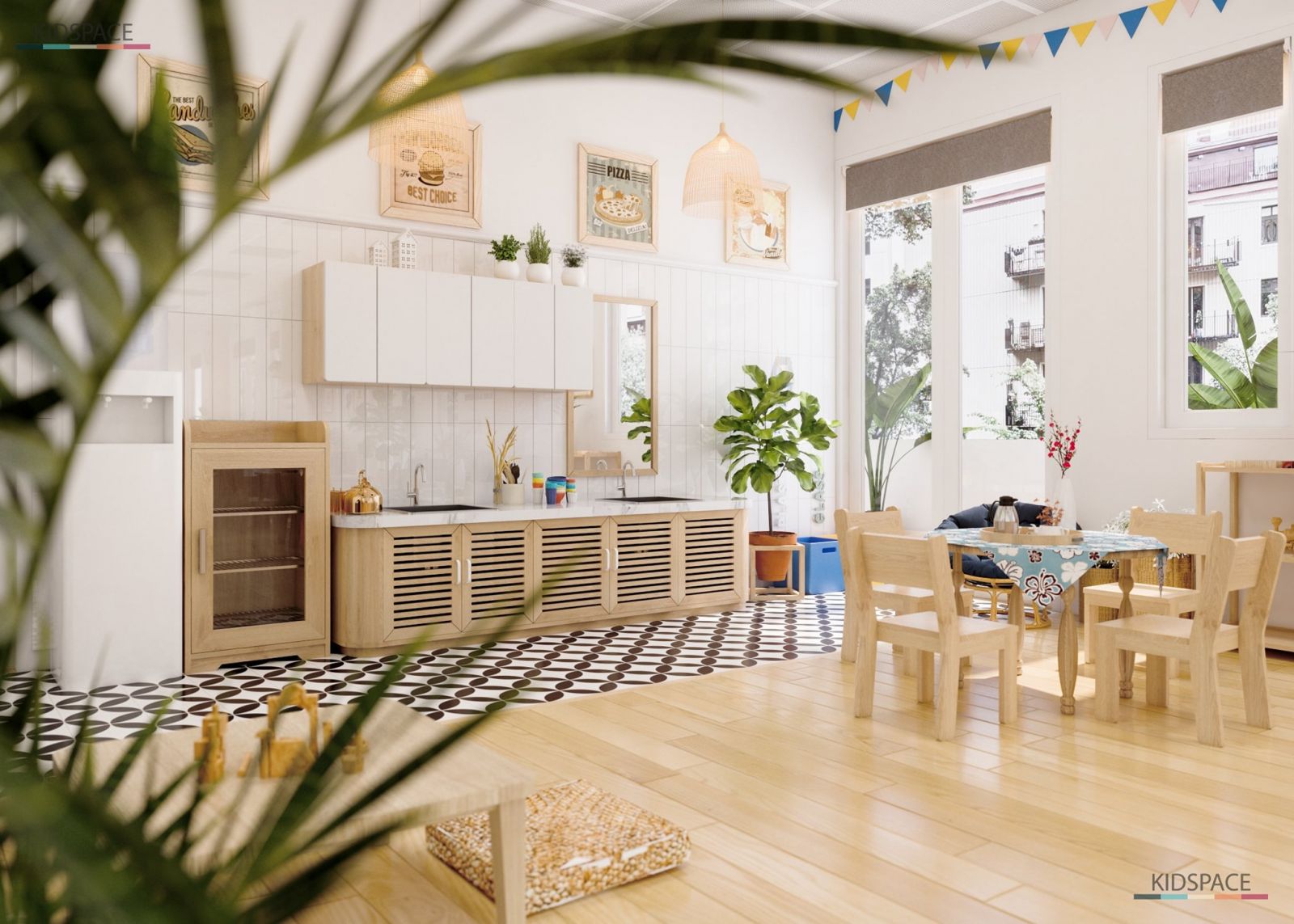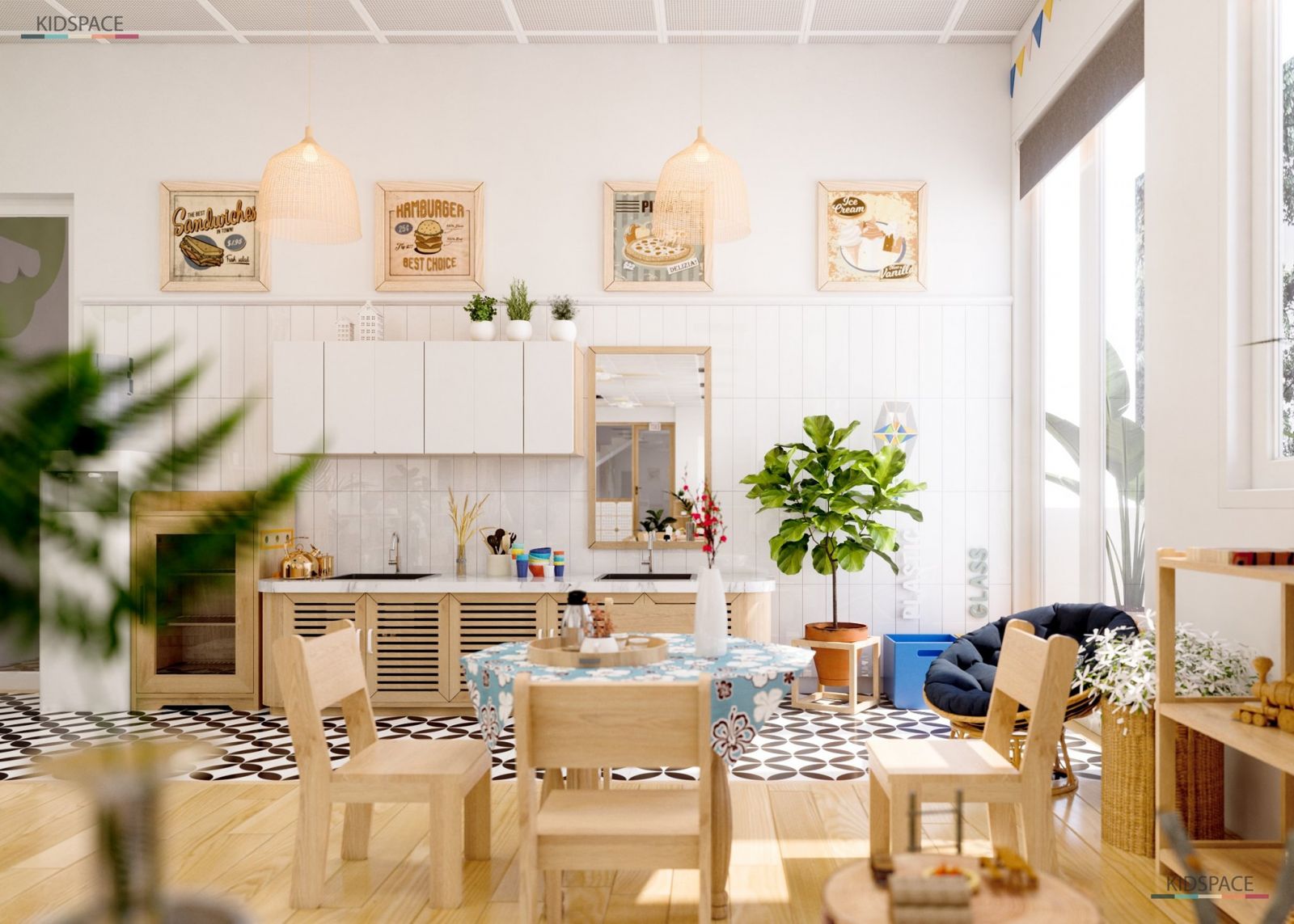 - Nội thất phù hợp với chiều cao của trẻ